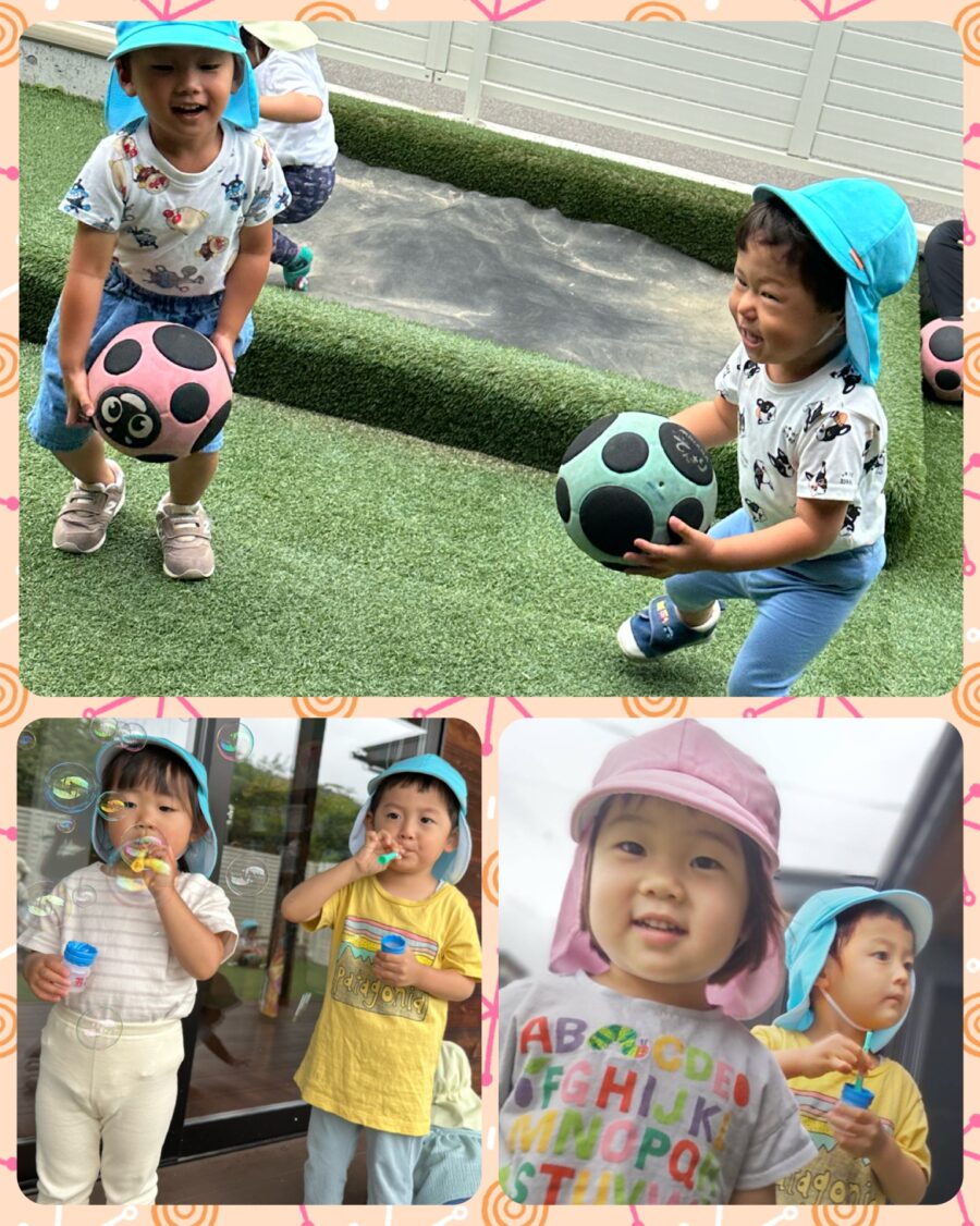 お友達と一緒に、シャボン玉やボール遊びを楽しんだリーフ組さん☺️