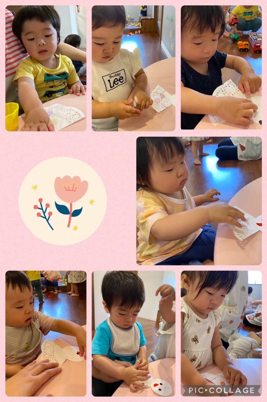 その後は製作でシール張りをしました☺️上手にぺたぺたと貼ることが出来ましたよ☘️