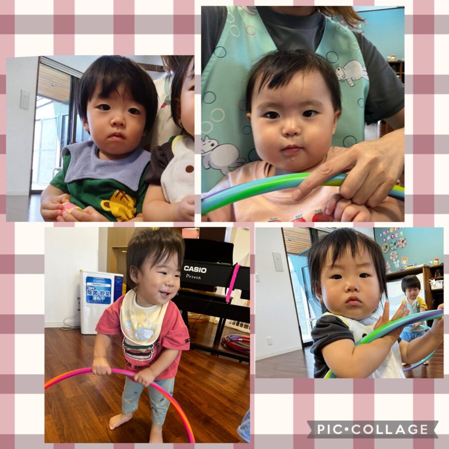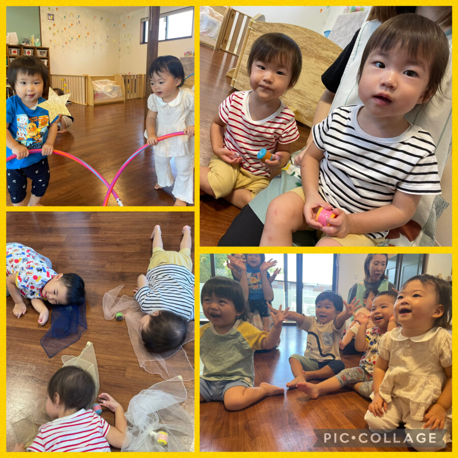モモ組さんもフラフープを使って電車ごっこをしたり、キャップの手作りおもちゃを使ってリズム遊びしたりとたくさん体を動かして楽しみました☺️✨