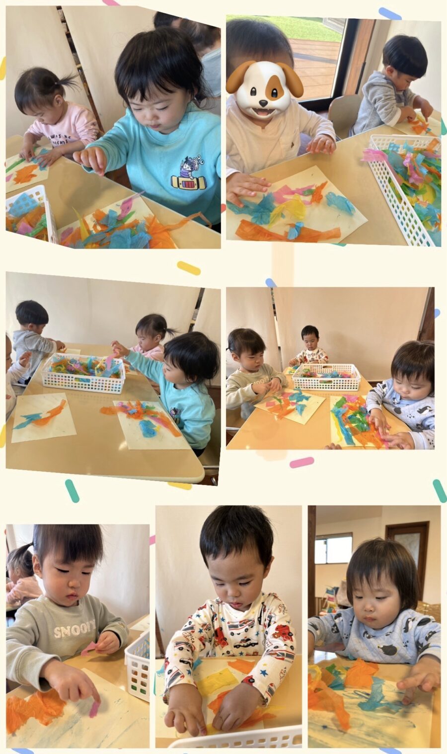 製作で使う花紙をみんなで小さく破きました✨