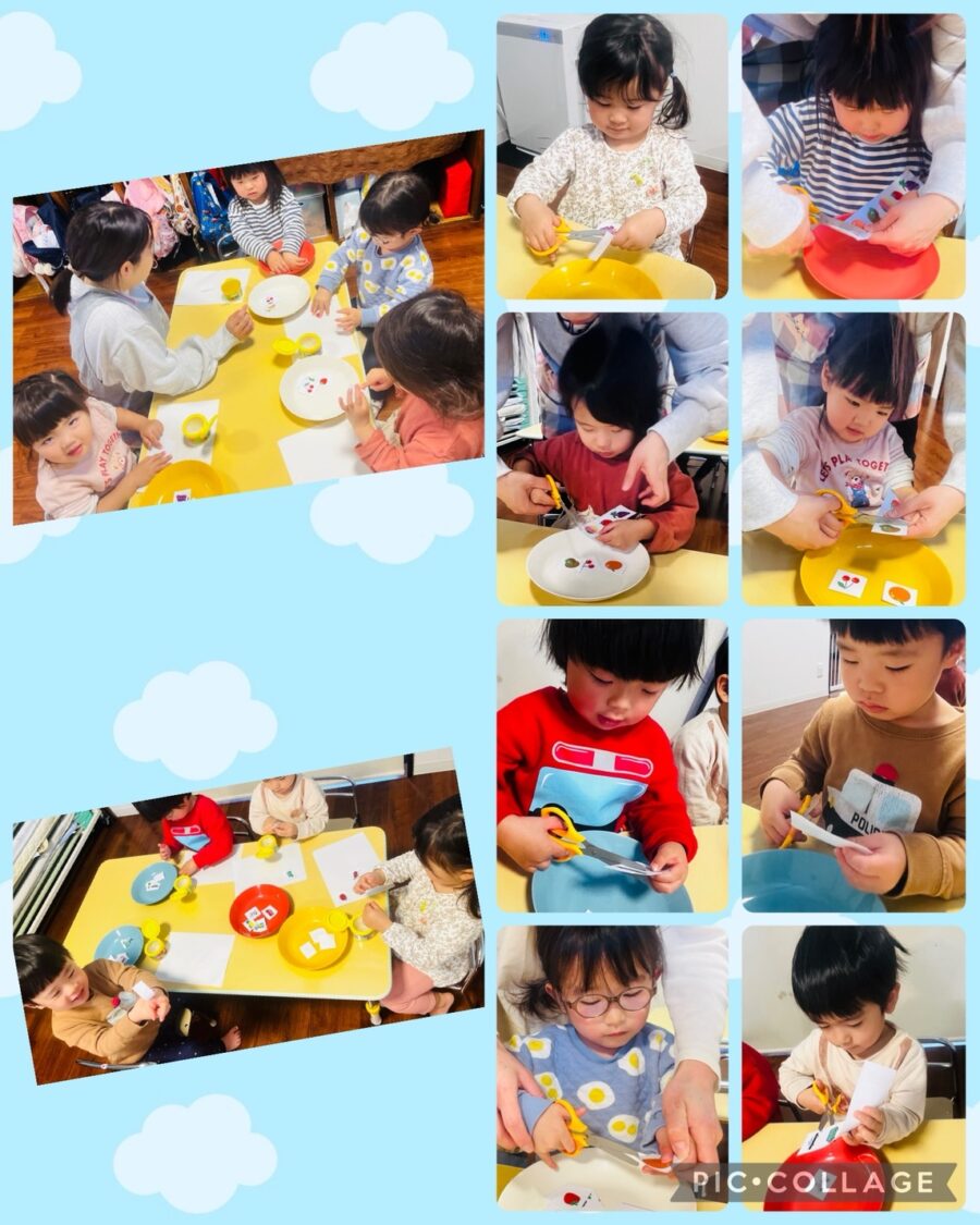 保育者と一緒に、一回切りから始め、最後は自分で切ることが出来るようになっていました😌