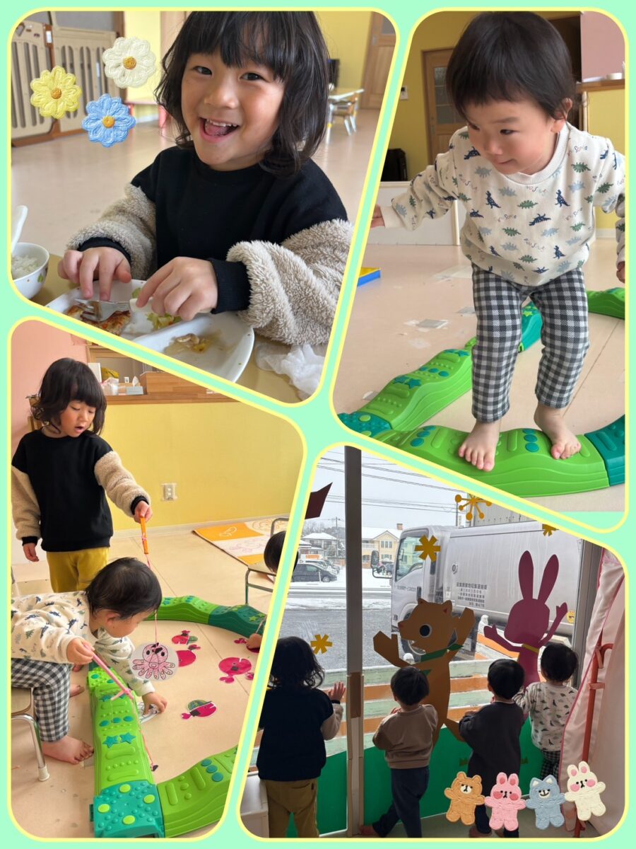 貼ったり、お花紙を丸めたりとみんな上手に指先を使って制作を楽しんでいました😄
