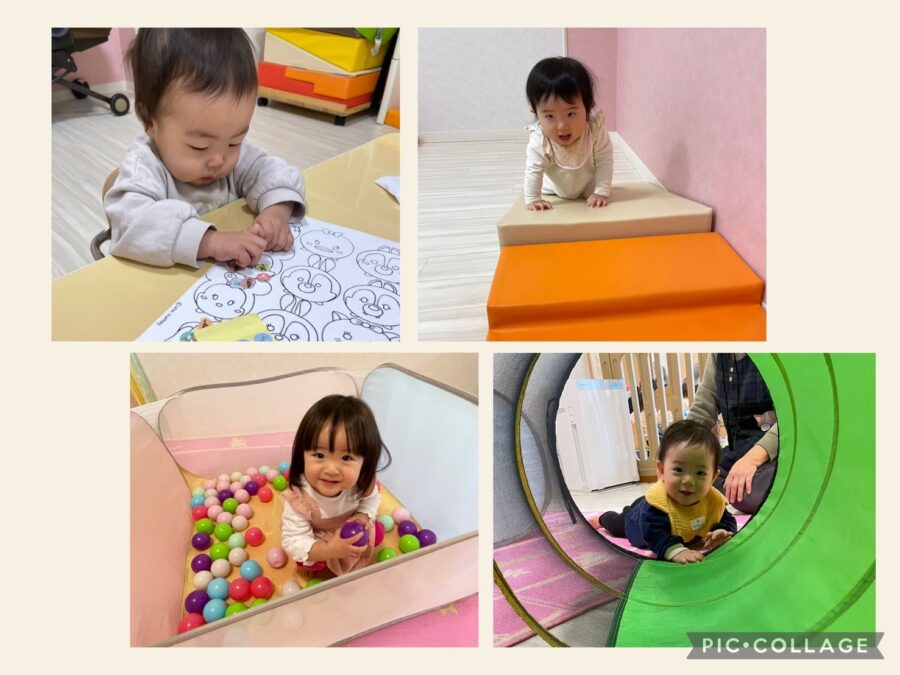 シール貼りに挑戦したりおままごとをしたり…好きな遊びを先生と一緒に楽しみました😊