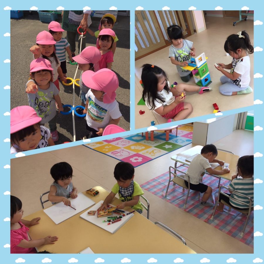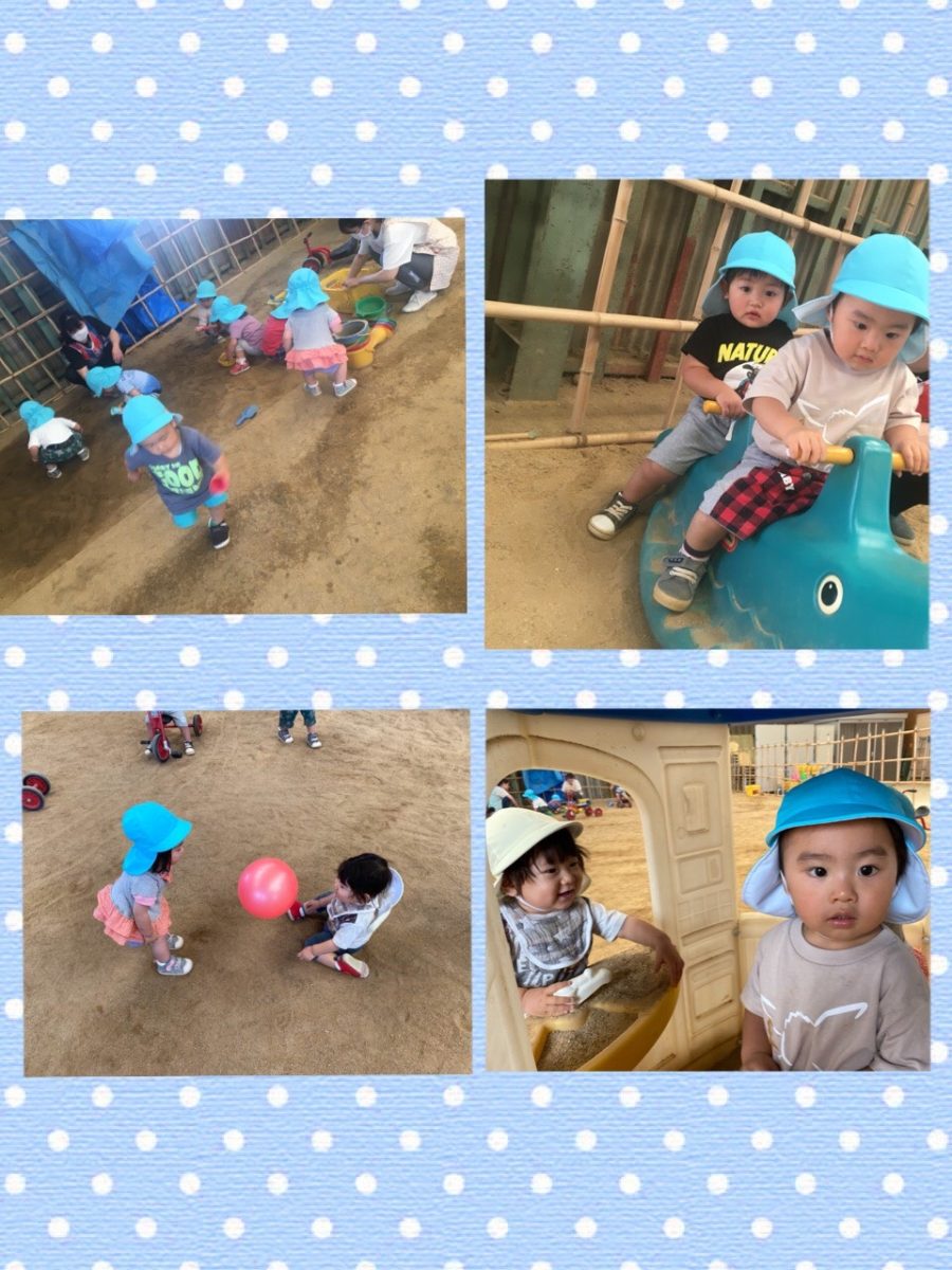 ミカン組さんとポム組さんは、運動場でのびのびと体をたくさん動かして遊んできました♪