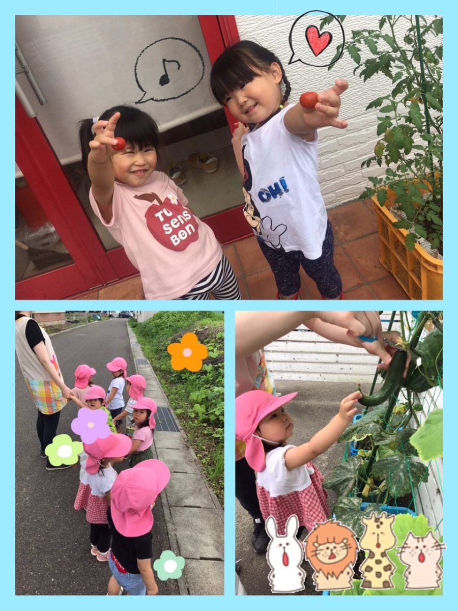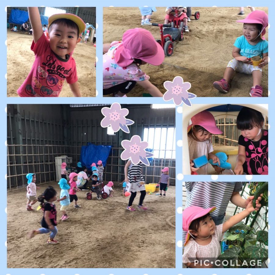 ブルー組さんも運動場で遊びました♬きゅうりも1本収穫しましたよ🥒