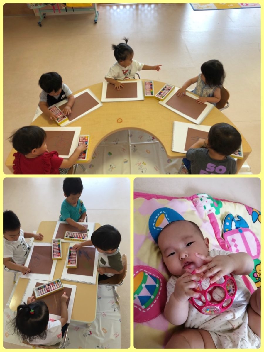 クレヨンでなぐり描きをしたり、絵の具やスタンプで指スタンプをしました٩(๑❛ᴗ❛๑)۶