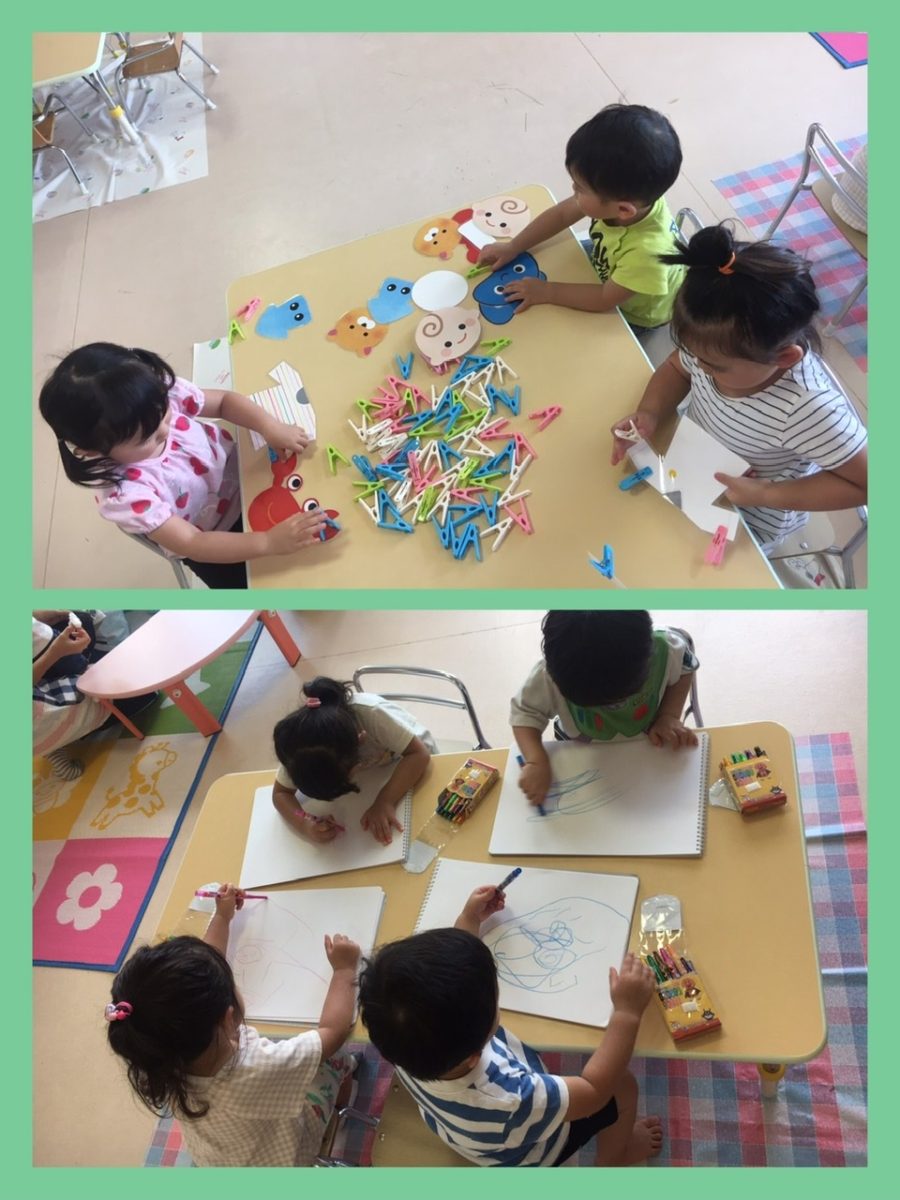 お部屋に戻ってからは、お洗濯ごっこやお絵描きで遊びました♪