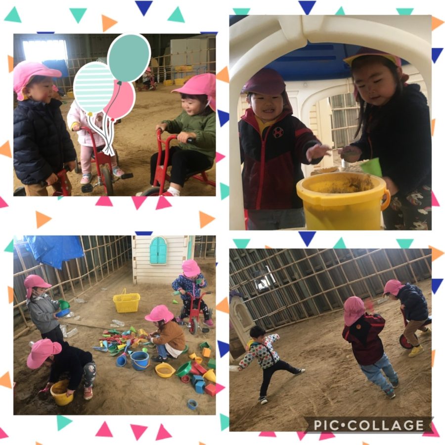 ミカン組さんは砂場でお山やアイスを作ったり、お家に入ってごっこ遊びを楽しみました(^o^)o
