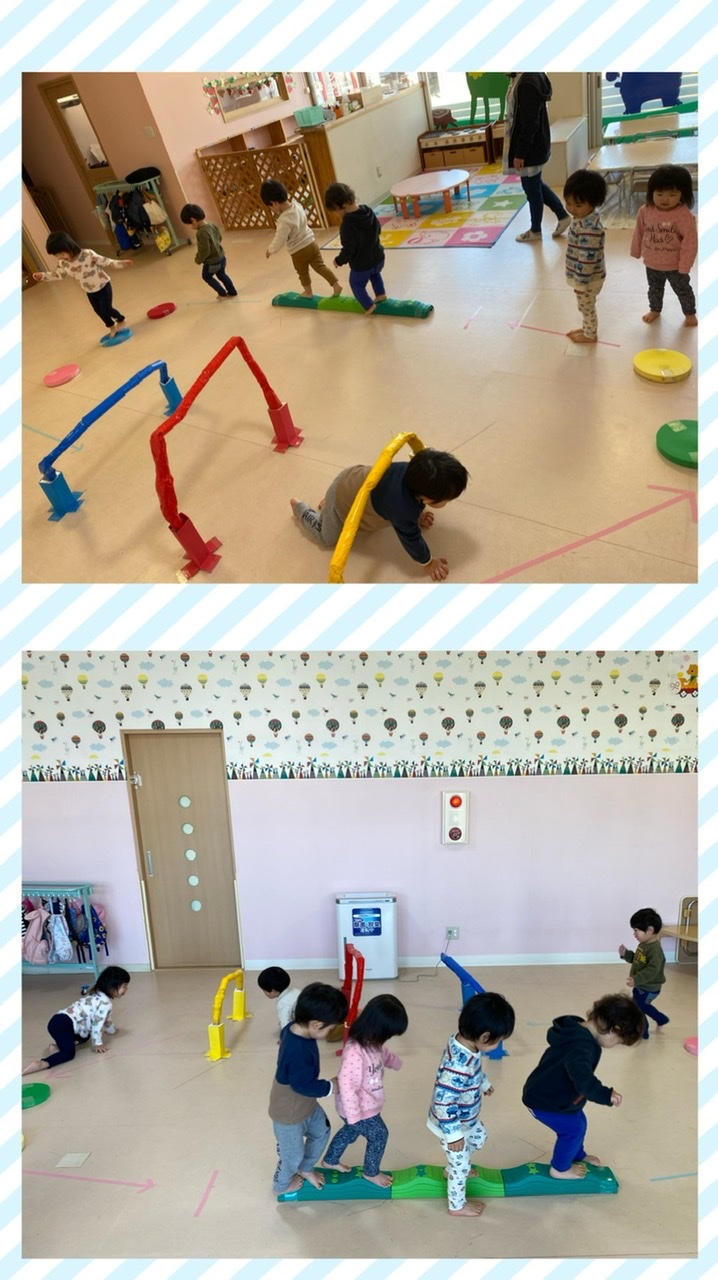平均台の上を歩いたり、ドレミマットを踏んだり、トンネルをくぐったりとたくさん体を動かしました✧ \(°∀°)// ✧