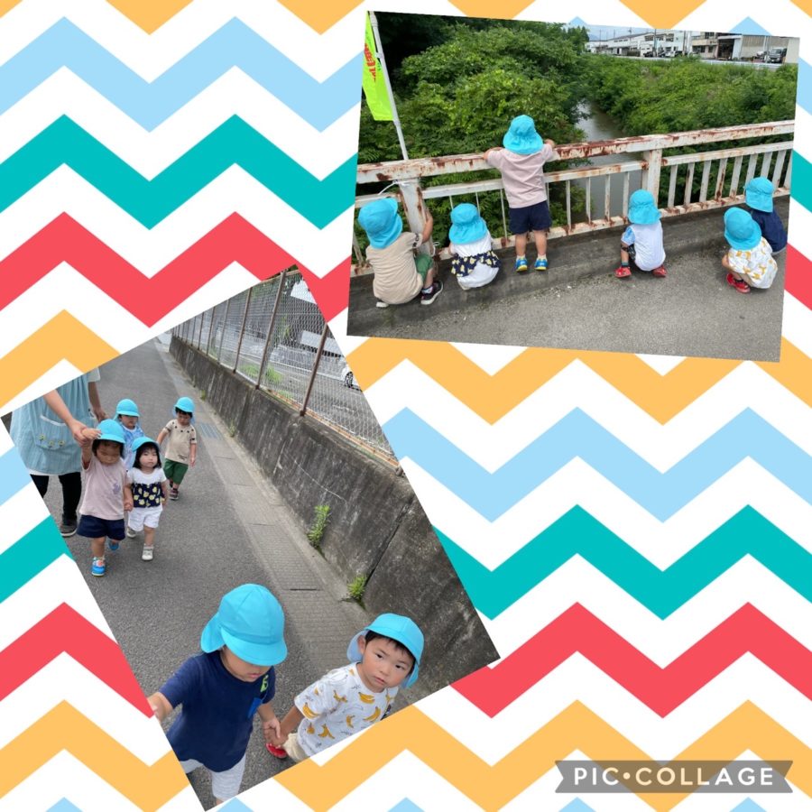 橋の上に着くと、「お魚いるかな〜」「葉っぱ流れてる!」とみんなで川を覗き込みながら観察を楽しみました🐟✨