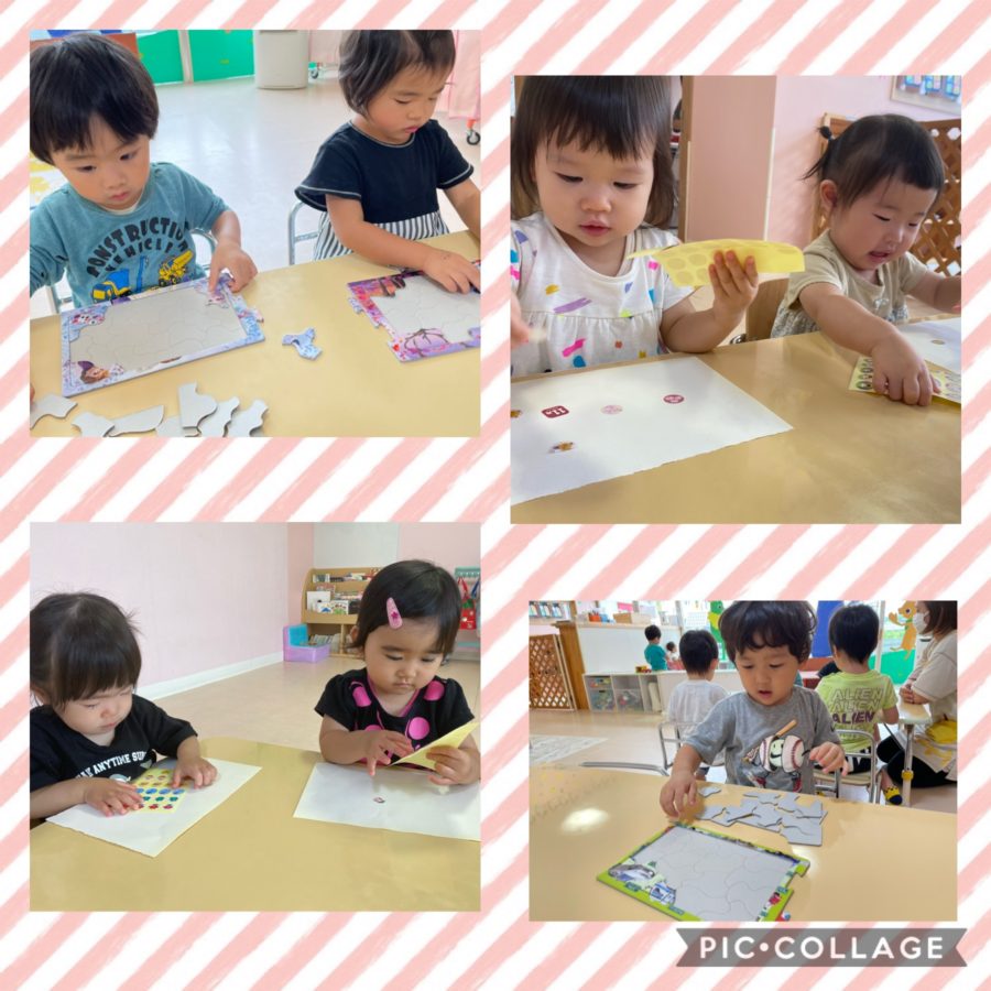 今日は、これからのプール遊びについてのお話しがありました🐠楽しく怪我のないように遊べるよう、お約束事を確認しながら、お話を聞きました😊また今日はブルー組さんとミカン組さんは、コーナー遊びをしました♪ブロック、シール遊び、パズルとそれぞれ好きなコーナーに行き遊びを楽しんでいました!