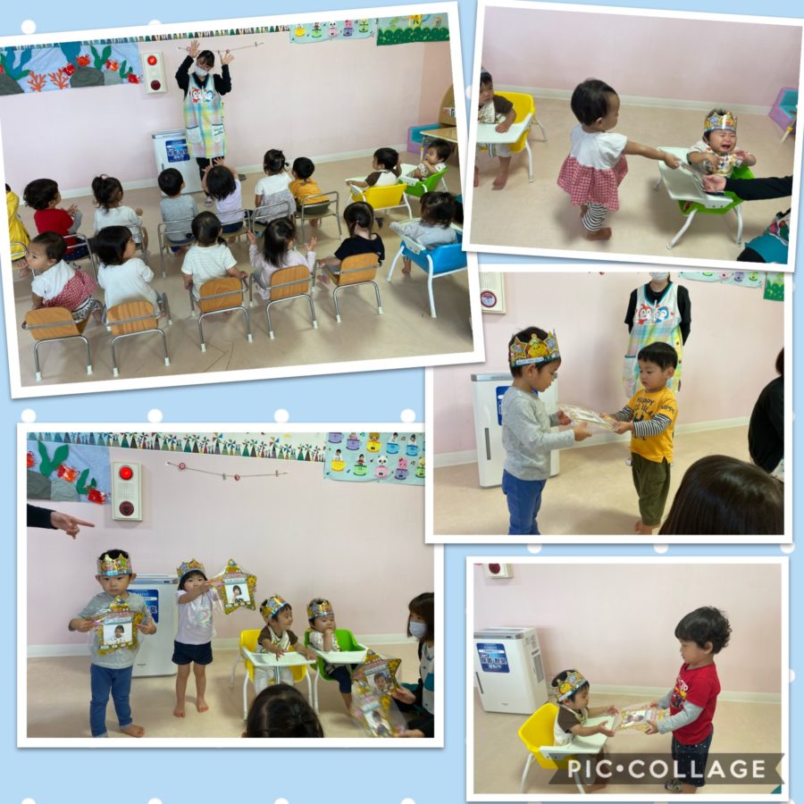 今日は8月生まれのお友だちの誕生会があり、みんなでお祝いをしました🎊プレゼンターから色紙のプレゼントをもらったり、歌のプレゼントをもらい、とても嬉しそうでした❤️先生からの『まんまるちゃん』のカードシアターのプレゼントもあり、みんな動物を当てっこしたり、とても楽しい誕生会でした🎁