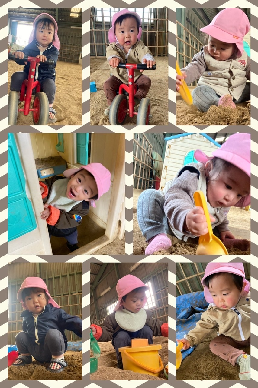 砂遊びをしたり、三輪車に挑戦したりと、元気いっぱい遊びました✨
