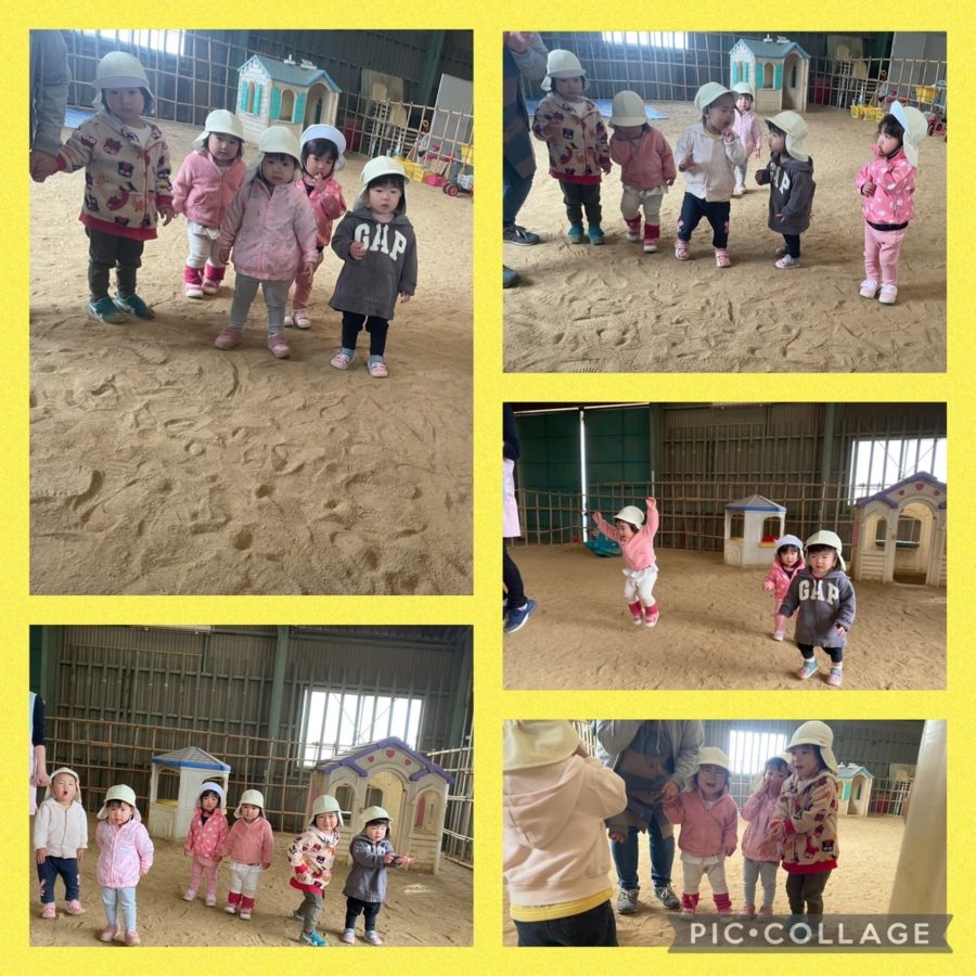 ミカン組さんは、運動場で「おおかみさん」をしました。音楽に合わせておおかみになった先生に「おおかみさーん」と大きな声で言ったり、笑顔で逃げたりして楽しみました😊また、みんなでよーいドンをしたり、バッタなどになりきってジャンプしたりして楽しみました😆