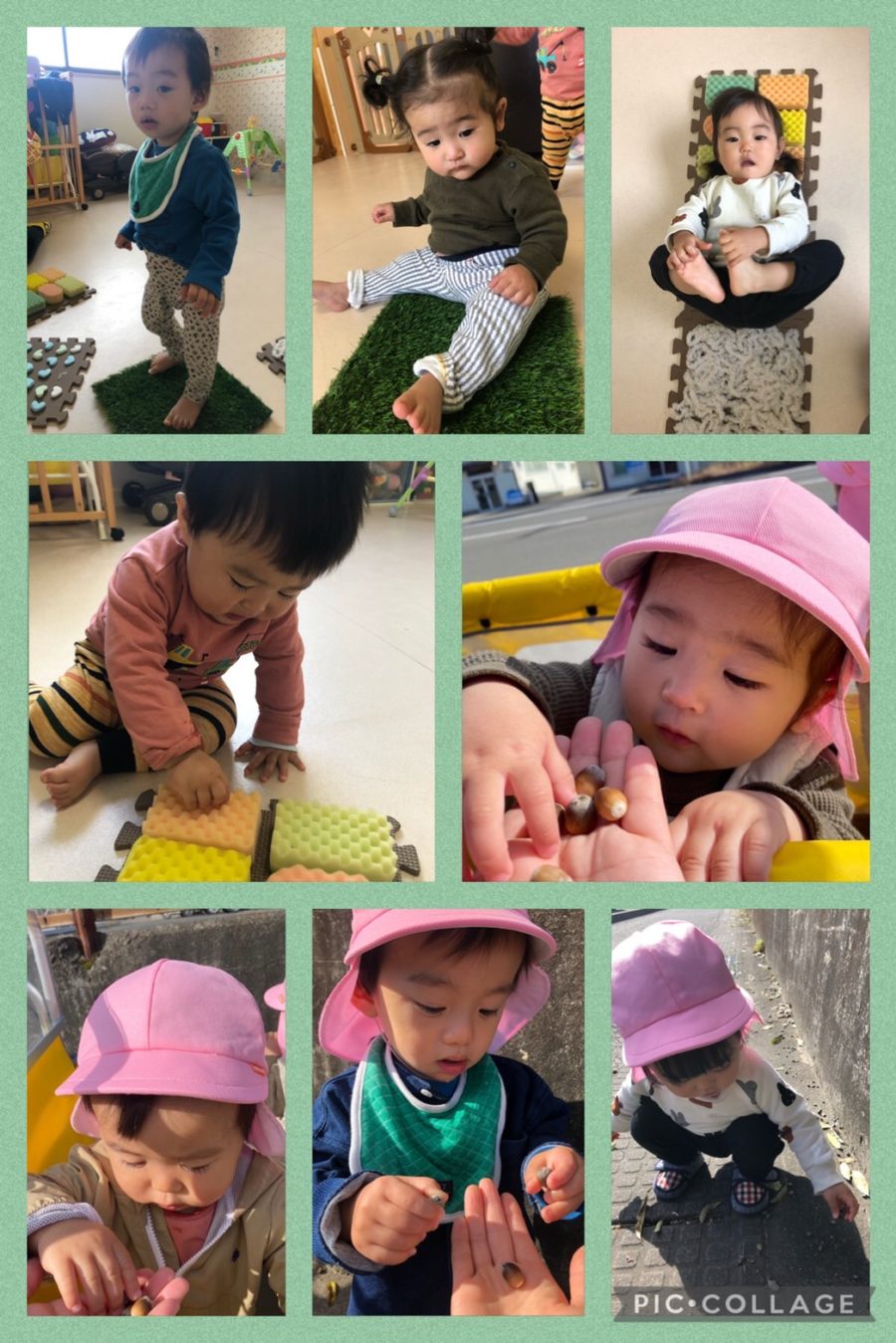ポム組さんは感触マットで遊んだり、市場までお散歩に出かけたりして過ごしました。どんぐりがたくさん落ちていて、嬉しそうに「ちょんちょん」と触っていました🍁