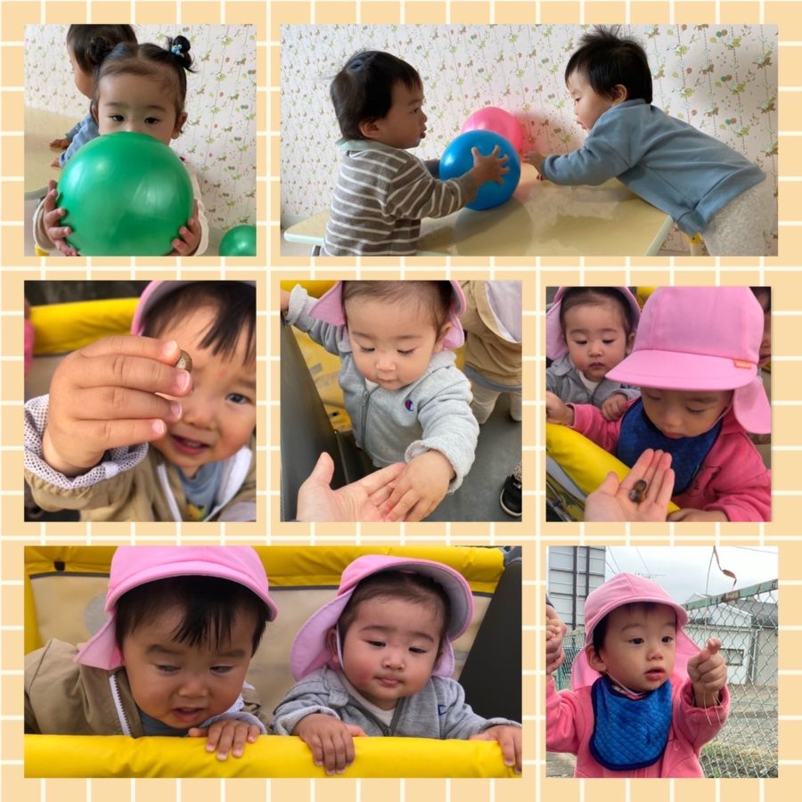ボールを投げたり、追いかけたり、お散歩では、どんぐりを大事そうに握っていたりと、ニコニコの子ども達でした♪