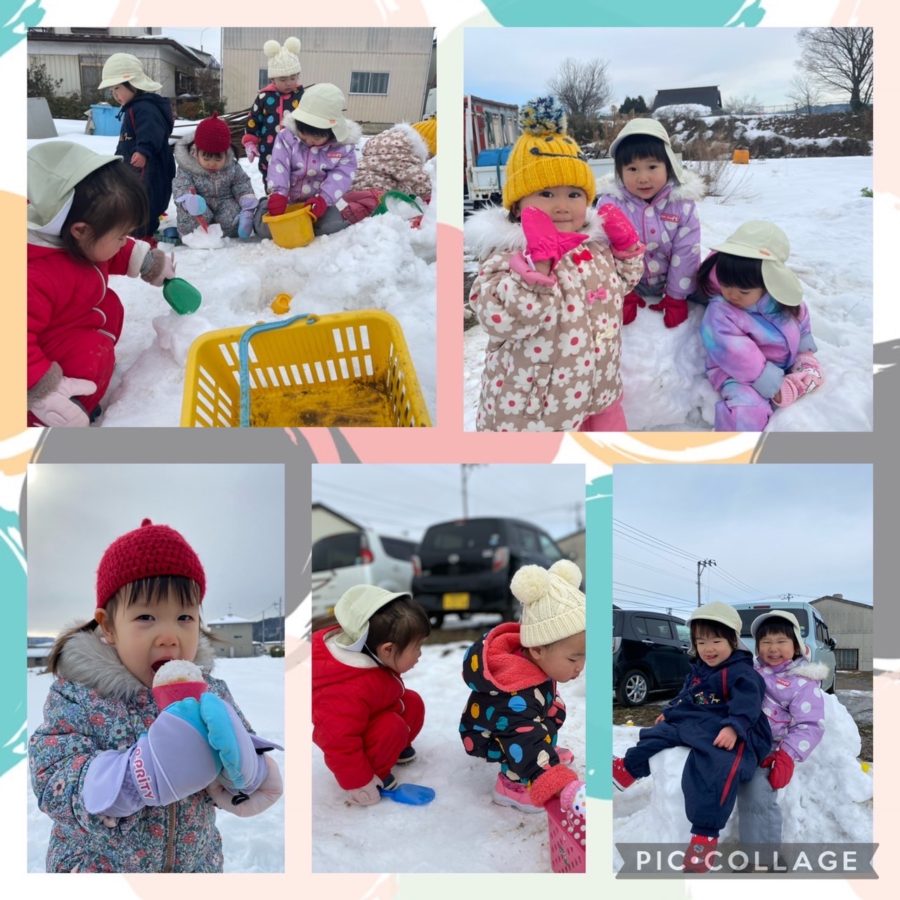 今日は雪遊びをしました。カップにたくさん雪を詰めてピンクと青の色水をかけてかき氷やケーキを作りました♫たくさん作ってみんなでパーティーを楽しんだブルー組さんでした。