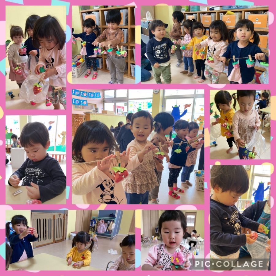 今日は製作でイチゴを作ってイチゴ狩りごっこを楽しみました。