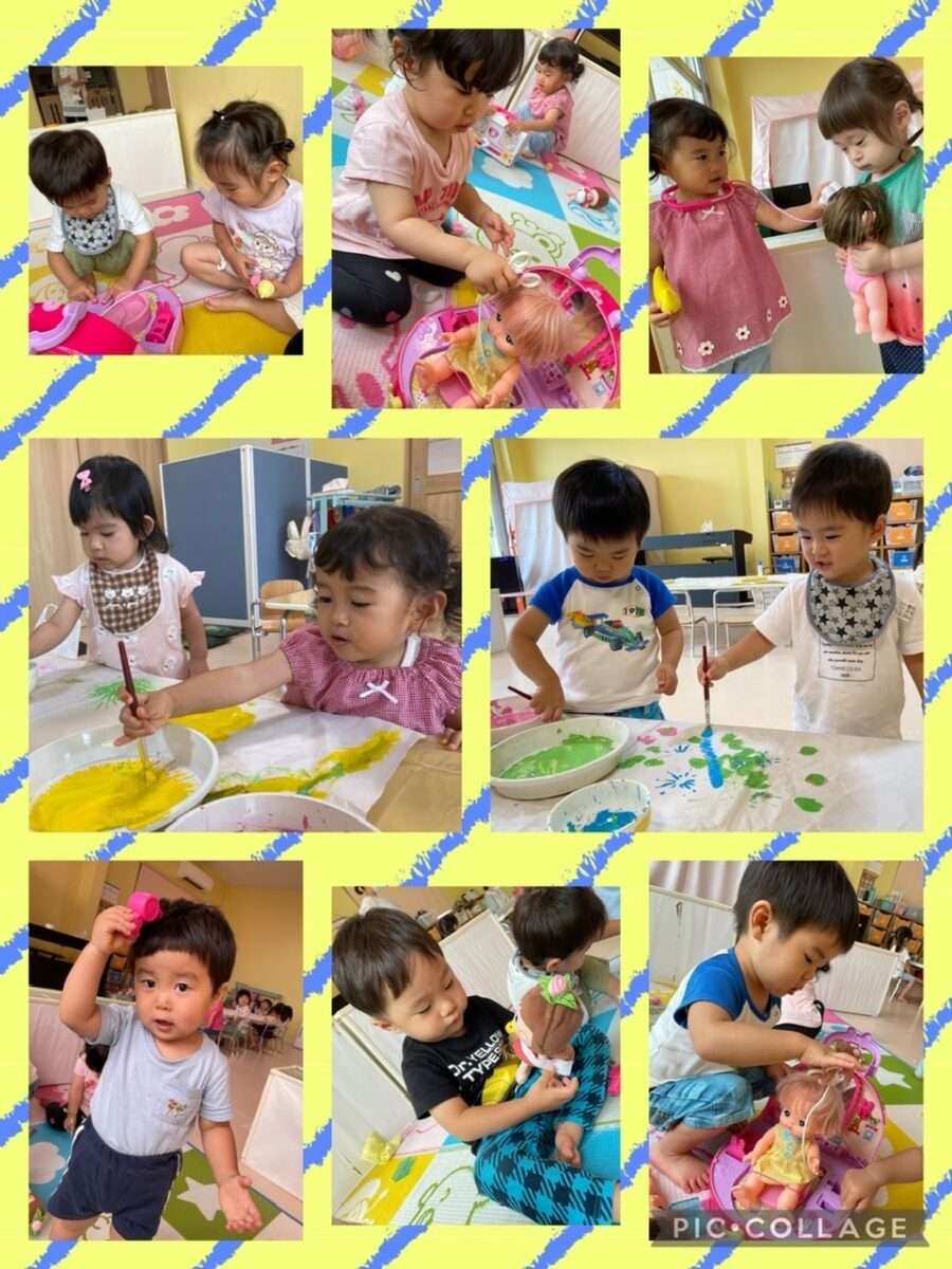 ミカン組さんは、お部屋でメルちゃんで遊んだり、お絵かき、シール貼りをして楽しみました😄メルちゃんの病院セットでは、聴診器を耳に当てたり、注射をして楽しんでいる姿が見られました✨