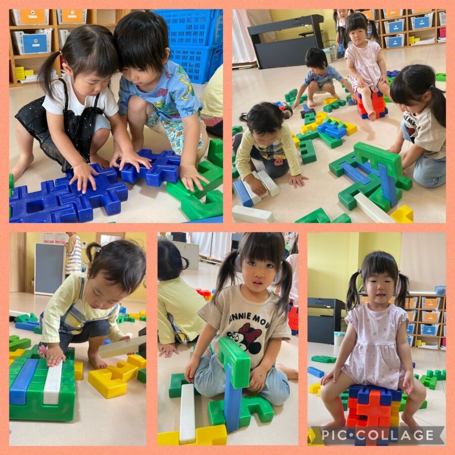 ブルー組さんは、室内で大型ブロックで遊びました!