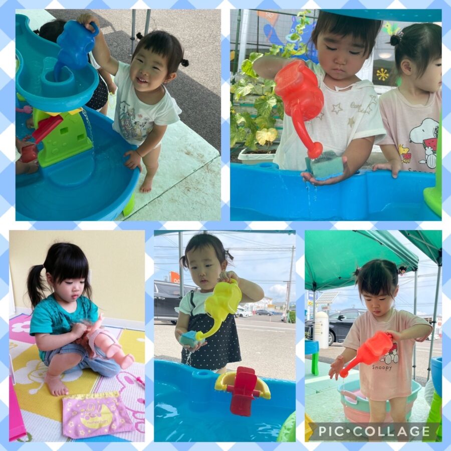 ミカン組さんは、水遊びをしました。
