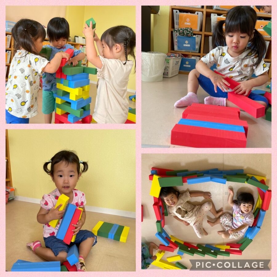 ブルー組さんは、室内でソフト積み木で遊びました!