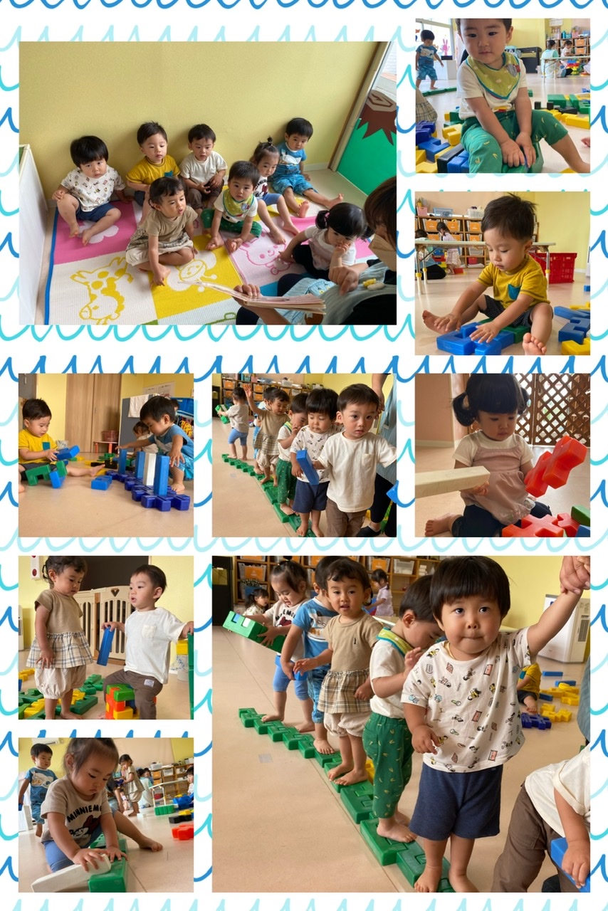 ミカン組さんは大型ブロックで遊びました✨上手に繋いで、線路を作り、その上を歩いてみたり、自分達で考えて組み合わせてみたりと、集中していました🎵