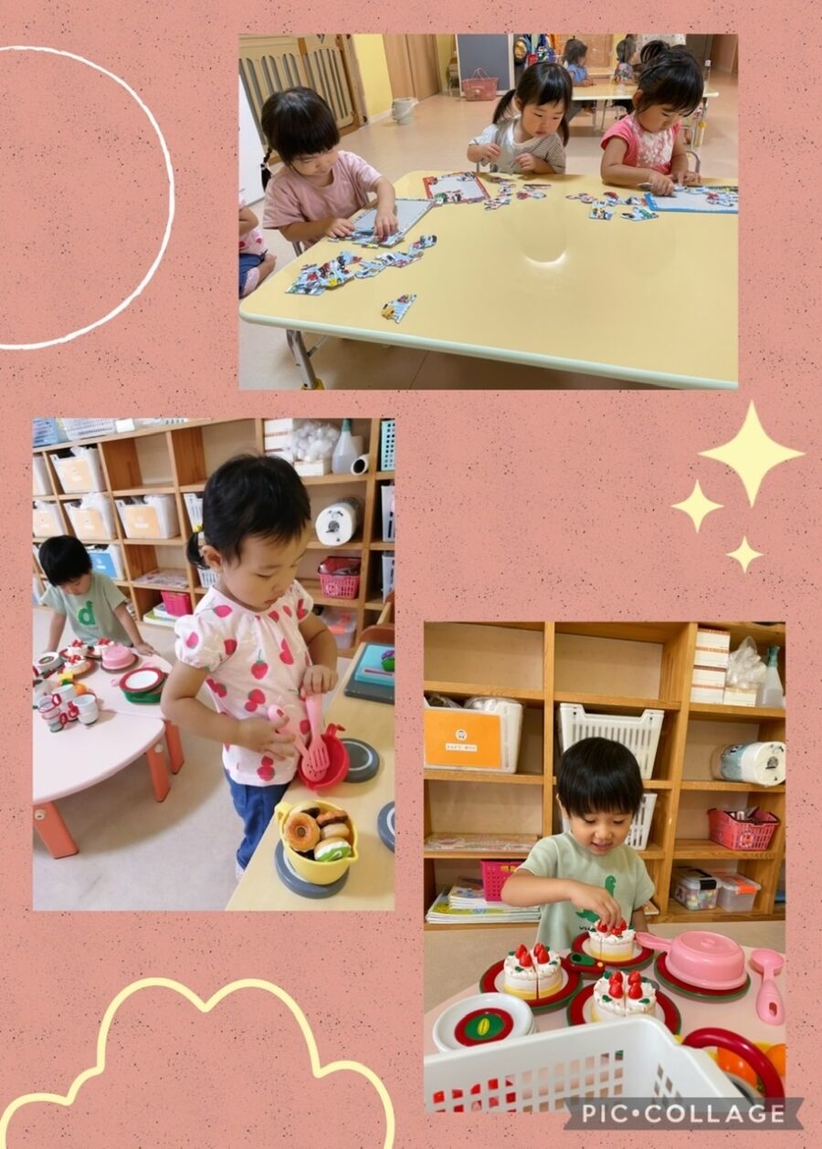 パズルコーナーではお友達や先生に「これどこ?」と聞きながら完成させていました😊✨️