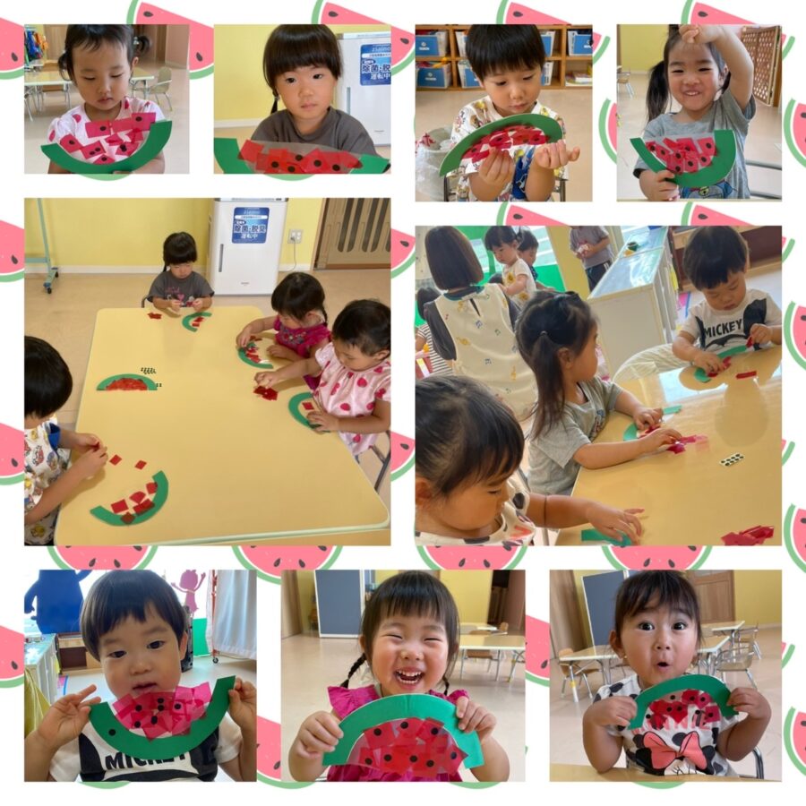 その後、ブルー組さんは製作でスイカを作りました🍉