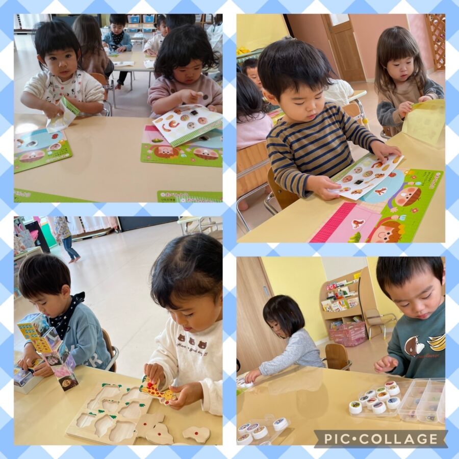 ミカン組さんは、シール貼りやパズルをして遊びました😊
