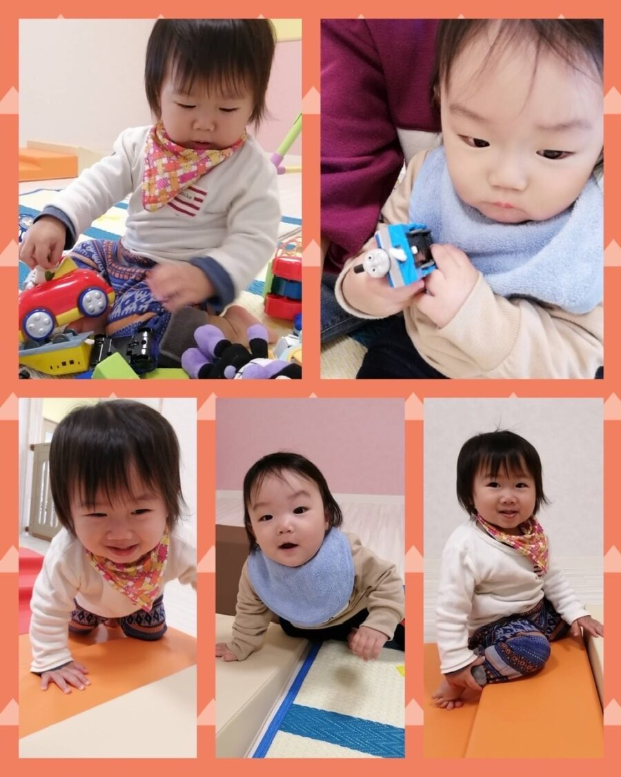 ポム組さんは、お絵描きやシール貼り、風船やハイハイマットなど、お部屋で遊んだあと、お散歩へ行きました😄