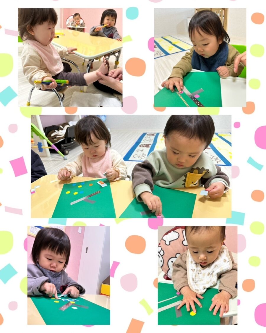 小さな指で、シールをはがして貼ったり、とても集中してやっていた子ども達です😄