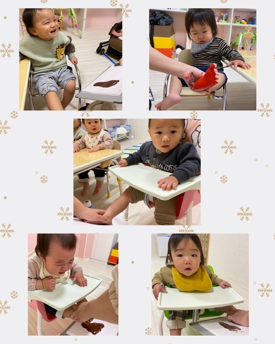 足型を取ったのですが、絵の具の感触に喜こんだり、嫌がったりと様々な反応でした。