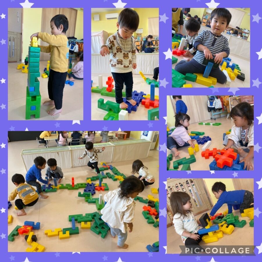 高く積み上げてみたり、道のように長く繋げたり、車のように乗ってみたり♪