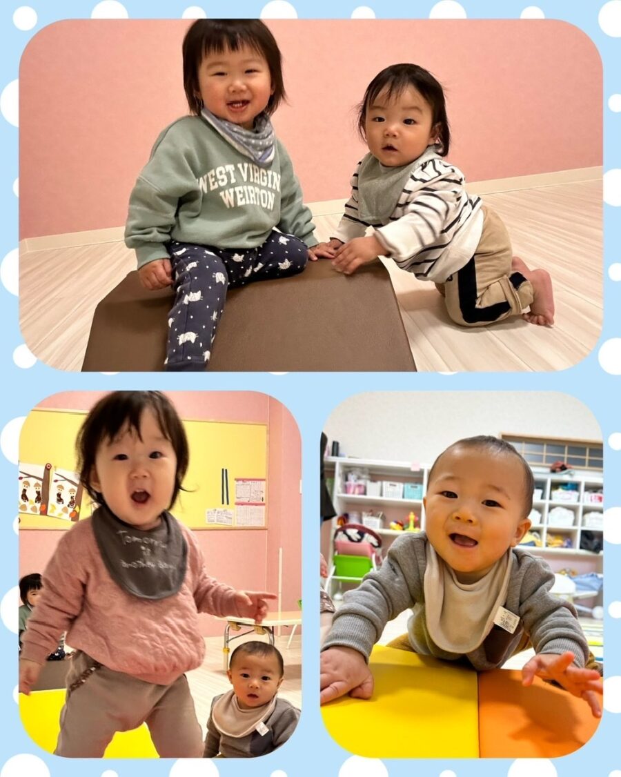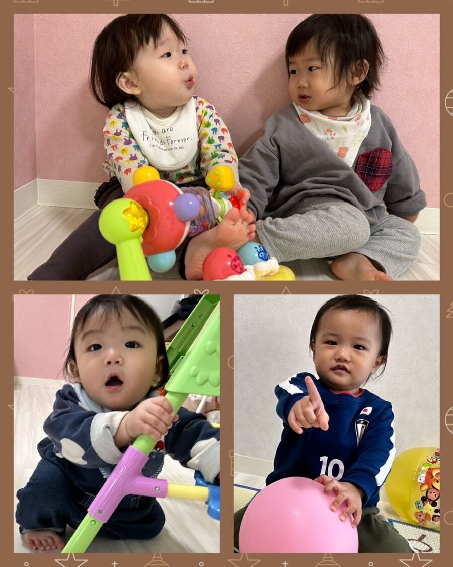 お友達と顔を見合わせ笑ったり、周りを指さして、自分なりの言葉で伝えようとする姿が見られています😄