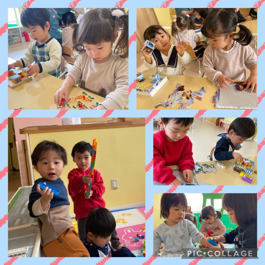 自分で好きなパズルを選び、「ここ?」「どこかな?」と考えながら進めていく子ども達♪完成すると「できた!」ととても嬉しそうでした✨