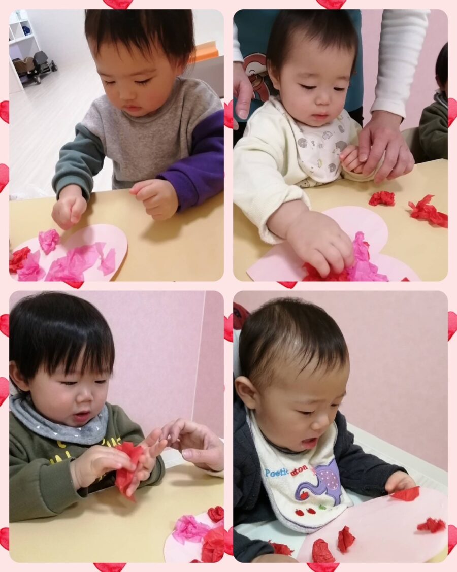お花紙を丸めて、両面テープの付いた画用紙にペタペタと貼ったのですが、自分で手を動かし集中してやっていました❤️