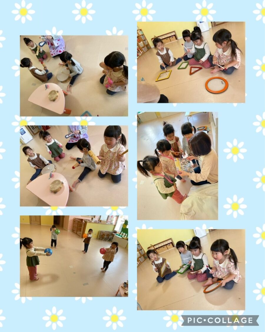 ブルー組さんは、様々な楽器を使って、ピアノの音に合わせてたくさん楽器の音を出して楽しみました🥁ボール遊びでは、ピアノの音に合わせて走ったり、止まったり、歩いたりとたくさん体を動かして楽しみました😊