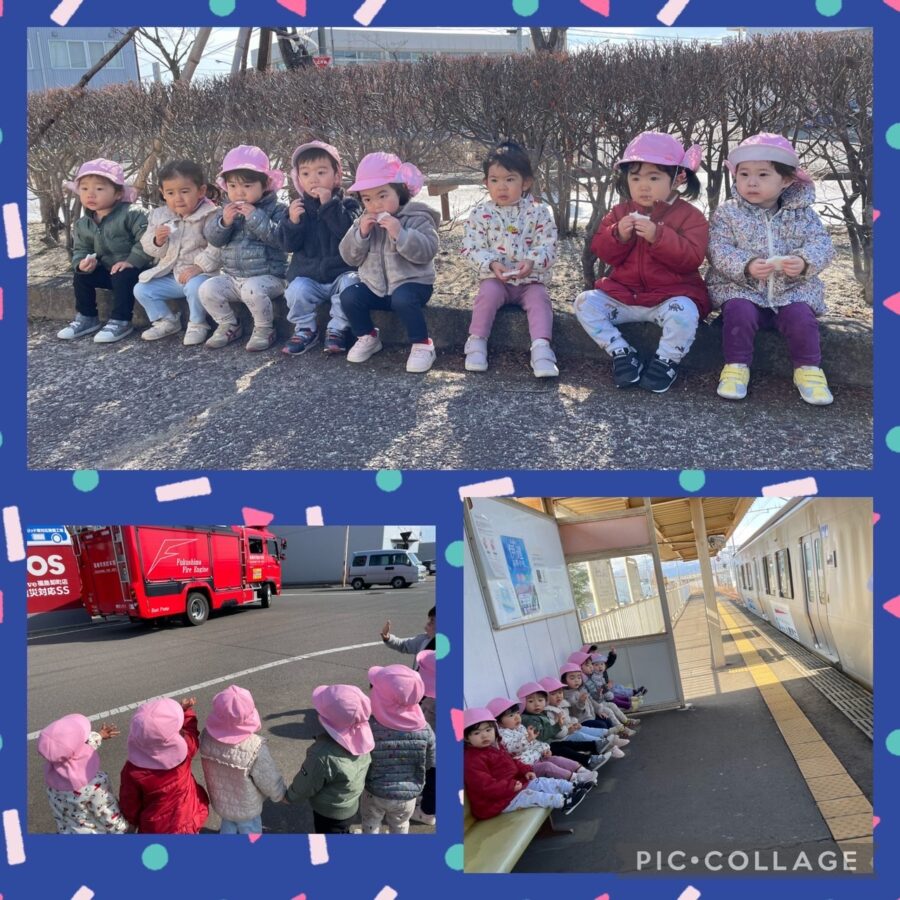 ミカン組さんは、おやつを持って卸町駅までお散歩に行きました。
