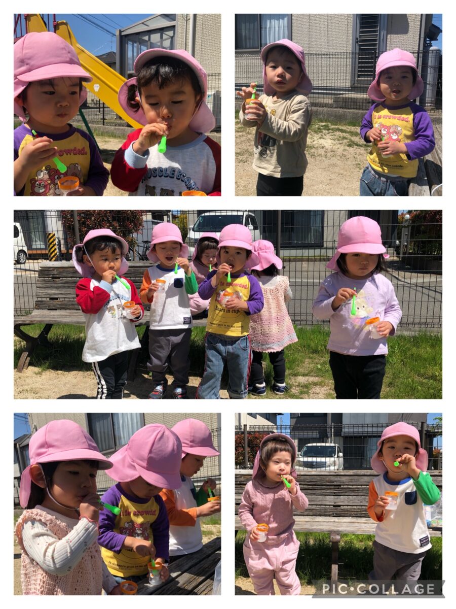 シャボン玉を追いかけたり、たくさん走り