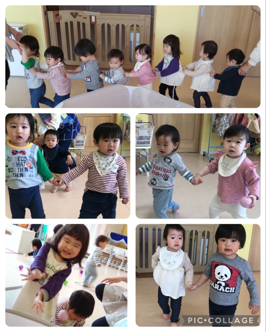 電車ごっこをすると、お友達の服を持って上手に並ぶことが出来ました!☺️