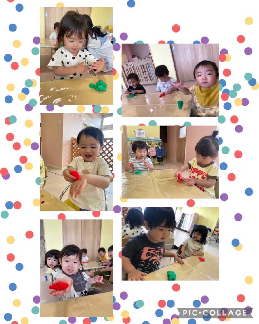 緑と赤のスライム、好きな色を選んで遊びました😉