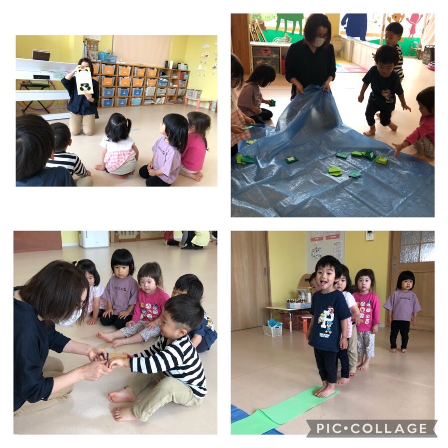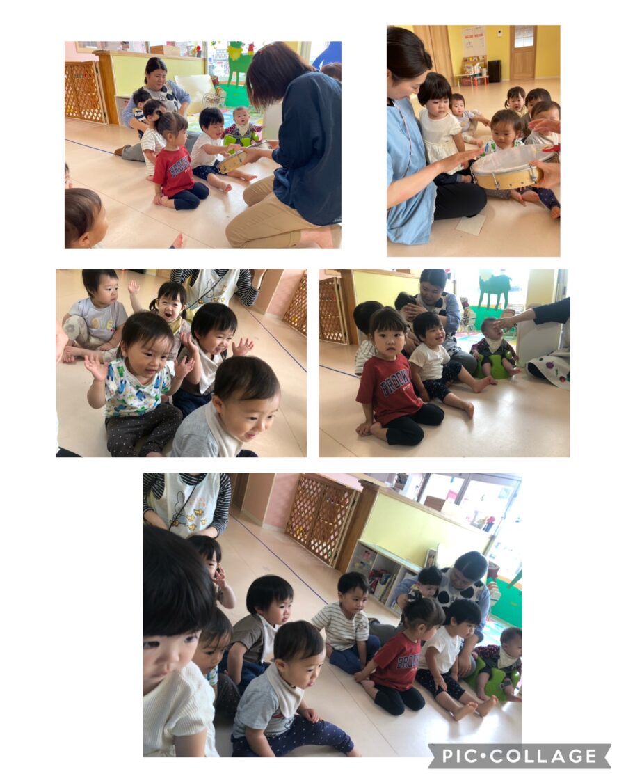 お友達がタンバリンの音を鳴らすと「わたしも〜」と真似して一緒に音を鳴らしていました🎵