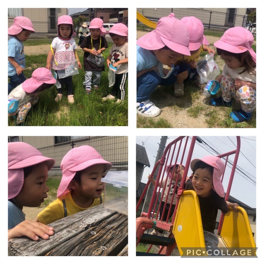 滑り台や追いかけっこをして身体を動かしたり、虫を見つけ上手に1人で捕まえるお友達もいました‼︎