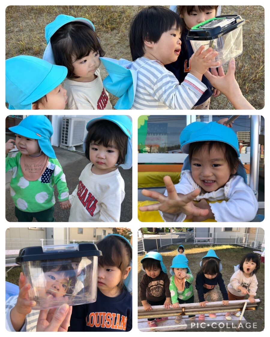 ミカン組さんはお散歩に行きました♪バッタを見つけて興味津々です(バッタ)追いかけっこをしたり、たくさん体を動かした1日でした!