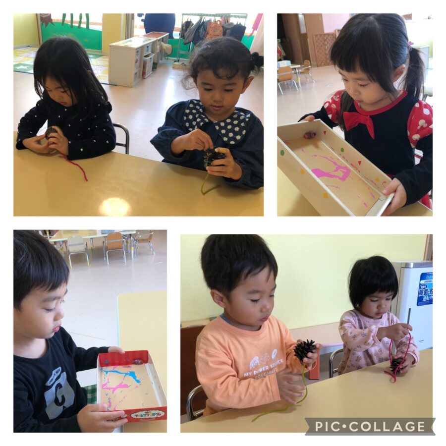 みんなで「どんぐりころころ〜♪」と歌いながら転がし絵を楽しみました😊