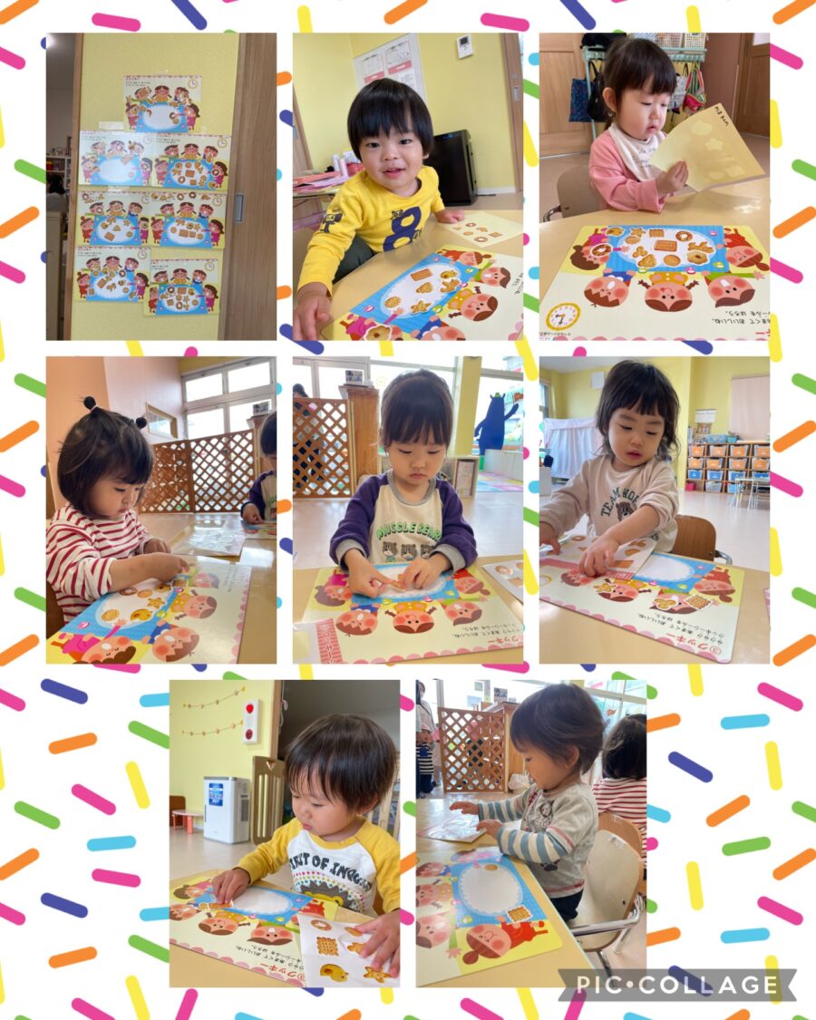 お皿の上にクッキーのシールをペタペタ‼️美味しそうに出来ました⭐️