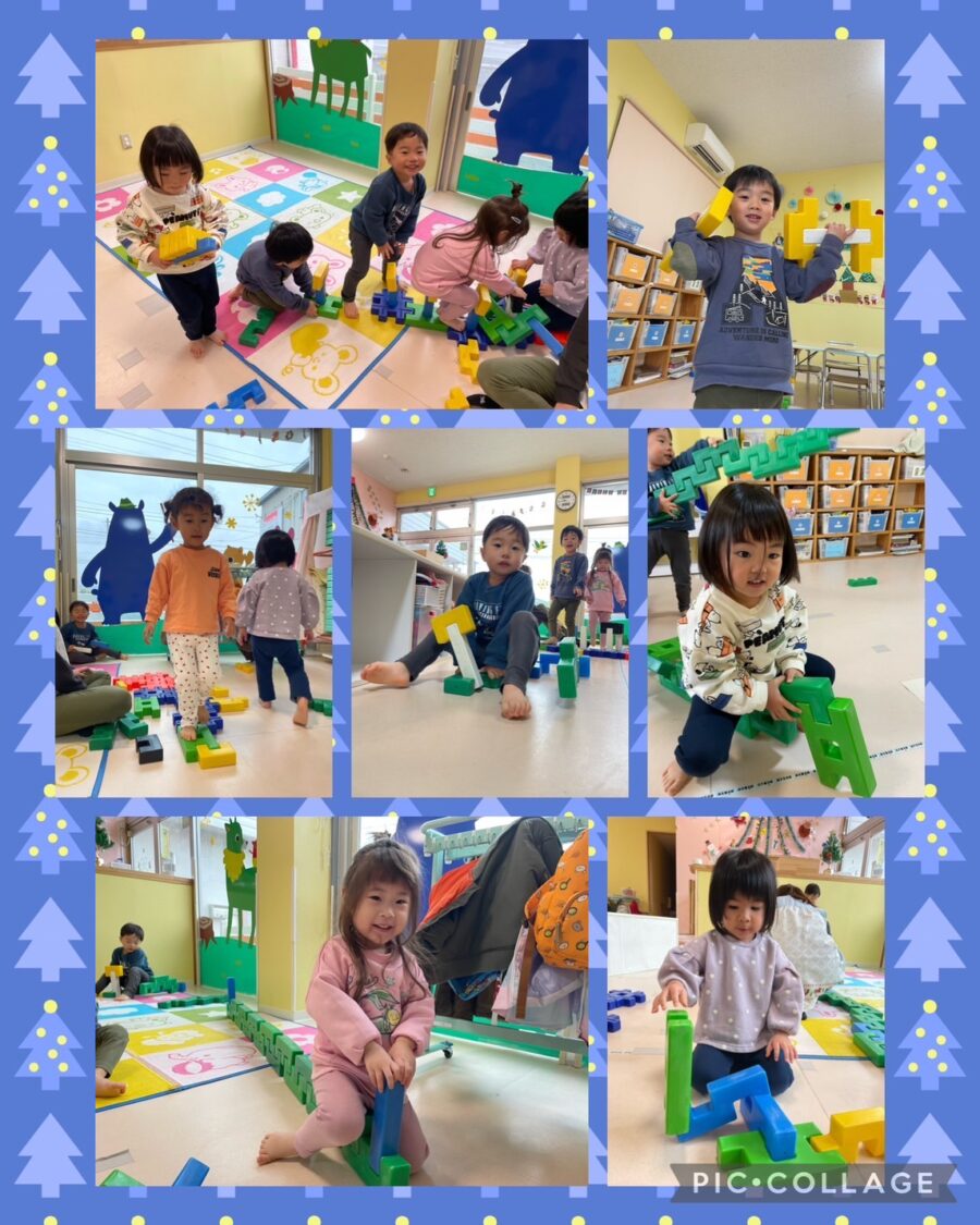 シャボン玉を吹いて楽しんだり、滑り台を楽しんでいます♬狭い道を「ロンドン橋」を歌って、落ちないように歩いていました😄