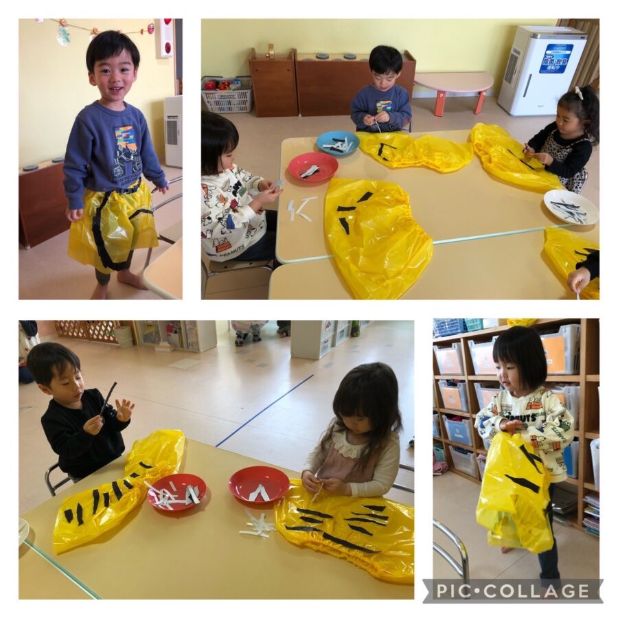 オニのパンツの歌をうたったり♪「強くなれるかなー⁈」とワクワクしながら製作に取り組んでいました😄