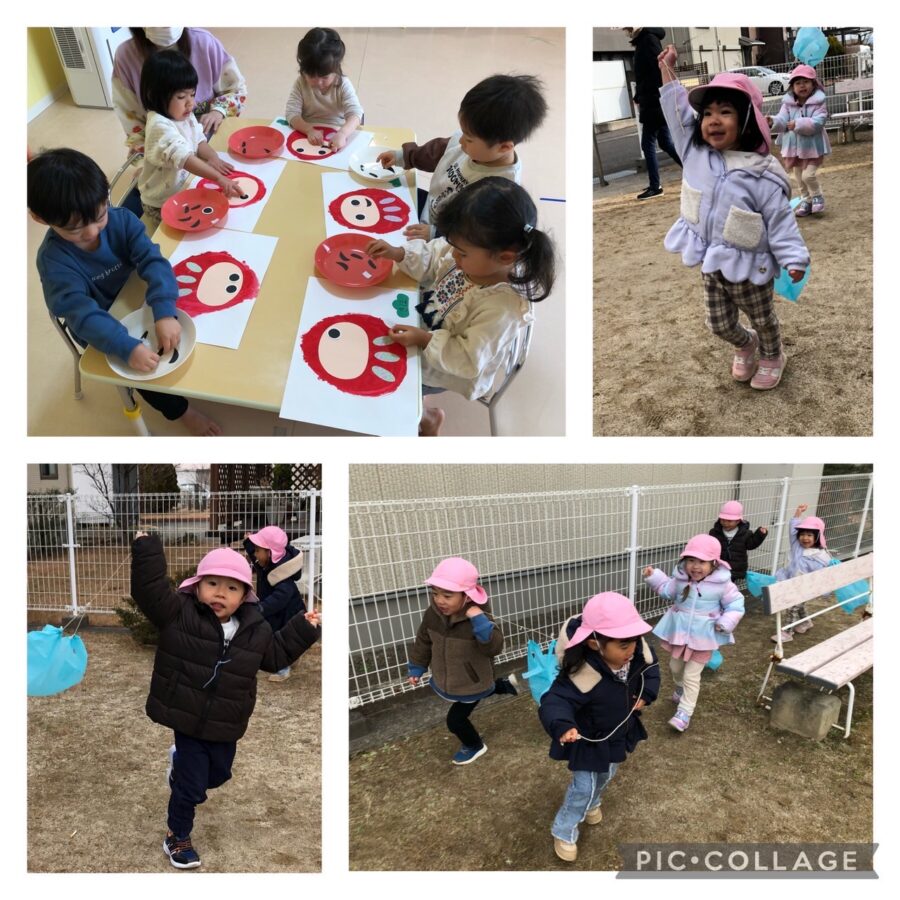 ブルー組さんはお正月遊びをしました‼︎手作りの凧を作ったり、福笑いやコマ回し、餅つきごっこをして大盛り上がりでした😁